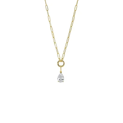 Keep your accessories elevated with the Colored CZ Pear Charm & Paperclip Clicker Toggle Link Necklace, a stylish necklace you'll love layering. A fresh spin on a classic favorite, this women's fashion necklace dazzles in Gold with sleek, contemporary flair. When comfort meets confidence, it transitions with ease while keeping your look smooth, cohesive, and fresh all day. Every wear feels fresh, making this piece anything but routine.