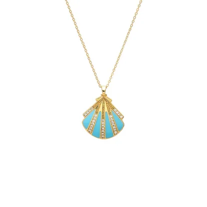 Keep it classy yet current with the Turquoise Enamel & CZ Seashell Pendant Necklace, a sleek necklace for your collection. Add a pop of shine with this sleek women's pendant necklace, crafted in Turquoise for every occasion. From solo errands to group dinners, this stylish accent fits into every outfit rotation and still feels fresh with each wear. It effortlessly upgrades your everyday look without a second thought.