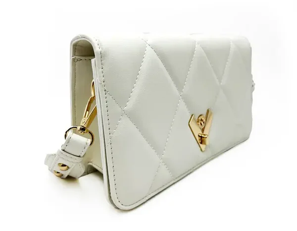 The “V” Lock Cross Body redefines luxury with its sleek, refined silhouette and signature locking detail. Expertly crafted from high-quality materials, this crossbody offers effortless elegance paired with secure functionality. Its compact design provides seamless hands-free convenience while elevating any look with a touch of sophisticated charm. Perfect for those who value both style and practicality in their everyday accessories.