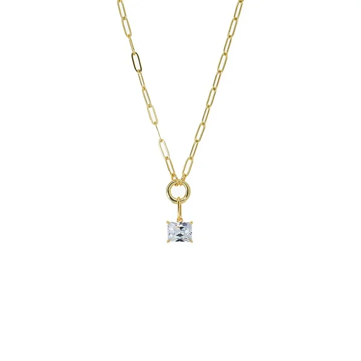 CZ Emerald Charm & Paperclip Clicker Toggle Link Necklace