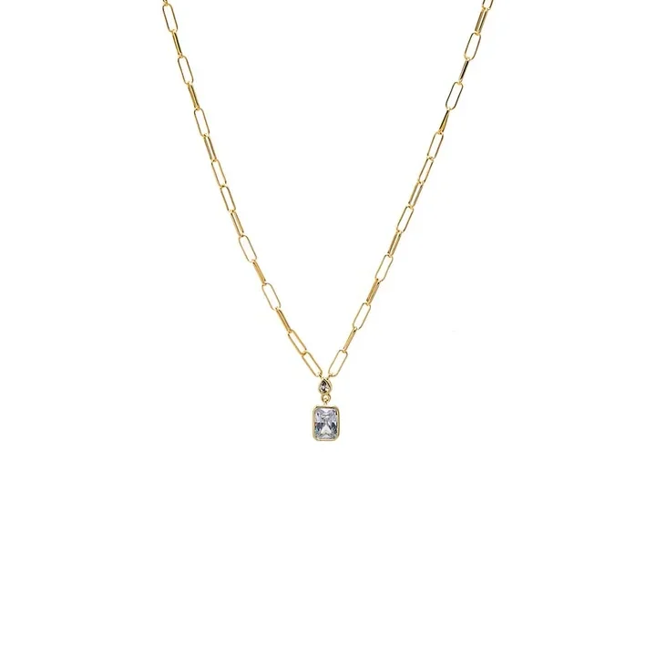 Say more with less in the Colored Baguette CZ Paperclip Pendant Necklace, a clean and classic necklace. Clean lines and brilliant hues define this women's fashion necklace, available in Gold and Emerald Green for effortless layering. No matter the plan or pace, you'll be surprised how naturally it works into your routine while still standing out just enough. Soft in style, strong in presence—this one stays essential.